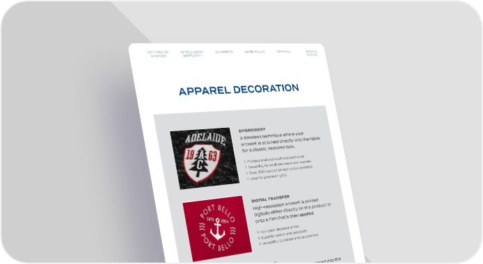 OPTIMISTIC INTELLIGENT GLIMMERS OPTIMISTIC INTELLIGENT GLIMMERS APPAAPRPEALREL BAGBSA & G S & CHANGE SIMPLICITY CHANGE SIMPLICITY TRATVREALVEL APPAREL DECORATION EMBROIDERY A timeless technique where your artwork is stitched directly into the fabric for a classic, textured look. Professional and sophisticated style Durability for multiple wears and washes Over 300 Isacord thread colors available Ideal for premium gifts DIGITAL TRANSFER High-resolution artwork is printed digitally either directly on the product or onto a film that’s then applied. Full-color detailed prints Superior clarity and precision Versatility to create unique graphics LASER Your design is precision-etched into the product, burning through the finish to reveal the material underneath. Ideal for large imprint areas. Unique tone-on-tone look Permanent and precise Can be placed over seams and zippers Great for premium gifts 98 TRENDS: 2025