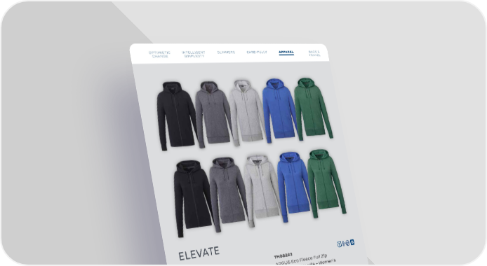 OPTIMISTIC INTELLIGENT GLIMMERS OPTIMISTIC INTELLIGENT GLIMMERS APPAAPRPEALREL BAGBSA & G S & CHANGE SIMPLICITY CHANGE SIMPLICITY TRATVREALVEL ELEVATE TM18223 TM98223 ARGUS Eco Fleece Full Zip ARGUS Eco Fleece Full Zip Lightweight Hoodie - Men’s Lightweight Hoodie - Women’s SIZE OPTIONS: S, M, L, XL, 2XL, 3XL, 4XL, 5XL SIZE OPTIONS: XS, S, M, L, XL, 2XL, 3XL Super-soft fleece made from recycled polyester and BCI-certified sustainable cotton Lightweight, eco-friendly fabric for all-day comfort Flattering design with shaped seams and a tapered waist Features front kanga pockets and an interior media pocket Rib-knit hem and cuffs for a cozy, tailored fit $55.33 [C] MIN QTY: 12 Decorate with: Apparel Digital Transfer | Apparel Embroidery | Apparel HXD 30 TRENDS: 2025