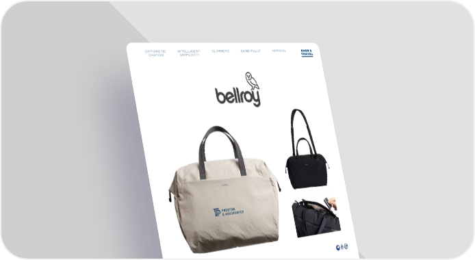 OPTIMISTIC INTELLIGENT GLIMMERS OPTIMISTIC INTELLIGENT GLIMMERS APPAAPRPEALREL BAGBS A& G S & CHANGE SIMPLICITY CHANGE SIMPLICITY TRATVREALVEL 4400-16 Bellroy Lite Recycled Duffle Key Features Lightweight ripstop fabric that doesn’t compromise on strength Can be folded or rolled, and packed for travel Zipper opens from each end, for ultra-wide, unobstructed access Spacious main compartment External zip compartment with slip pockets and integrated key clip Internal slip pockets for small items $159.99 [E] MIN QTY: 4 Decorate with: Digital Transfer | Embroidery 34 TRENDS: 2025