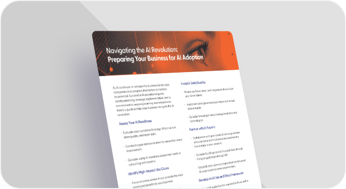 Navigating the AI Revolution: Preparing Your Business for AI Adoption As AI continues to reshape the business landscape, Invest in Data Quality companies must prepare themselves to harness its potential. Successful AI adoption requires • Ensure you have clean, well-organized data to fuel careful planning, strategic implementation, and a your AI initiatives. commitment to ongoing learning and adaptation. Here’s a guide to help your business navigate the AI • Implement data governance practices to maintain revolution. data integrity. Assess Your AI Readiness • Consider investing in data management tools and technologies. • Evaluate your current technology infrastructure, data quality, and team skills. Partner with AI Experts • Conduct a gap analysis to identify areas that need • Collaborate with specialized AI service providers improvement. who can bring technical expertise and industry knowledge to your projects. • Consider using AI readiness assessment tools or consulting with experts. • Consider building internal AI capabilities through hiring or upskilling existing staff. Identify High-Impact Use Cases • Establish clear communication channels between • Focus on areas where AI can provide the most AI experts and business stakeholders. significant benefits to your business. Develop an AI Use and Ethics Framework • Look for processes that are data-intensive, repetitive, or require complex decision-making. • Establish guidelines for responsible AI use within your organization. • Prioritize projects based on potential ROI and alignment with business objectives. • Address issues such as data privacy, algorithmic bias, and transparency. Start Small and Scale • Regularly review and update your ethics • Begin with pilot projects to gain experience and framework as AI technology evolves. demonstrate value before scaling up. Plan for Continuous Learning • Choose projects that can deliver quick wins to build momentum and stakeholder support. • AI technology evolves rapidly, so foster a culture of ongoing education and adaptation. • Use lessons learned from initial projects to refine your AI strategy. • Encourage employees to stay updated on AI trends and developments. © Copyright 2025 Continuum | discovercontinuum.com