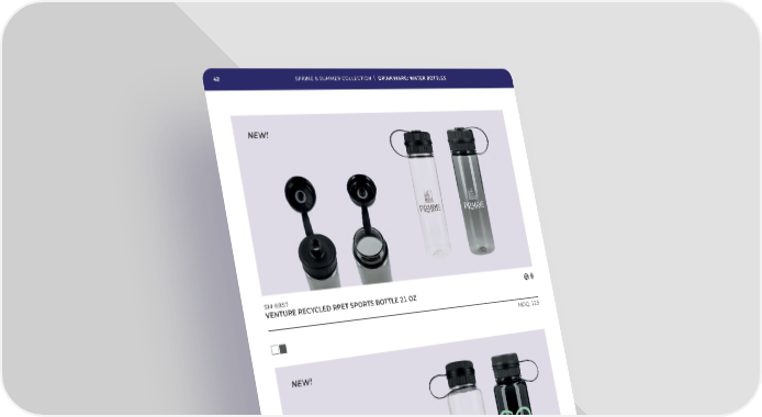 | 42 SPRING & SUMMER COLLECTION DRINKWARE: WATER BOTTLES NEW! SM £” VENTURE RECYCLED RPET SPORTS BOTTLE ¢› OZ MOQ: ‘” NEW! SM £” QUEST TRITAN™ RENEW SPORTS BOTTLE Ÿ¡ OZ MOQ: