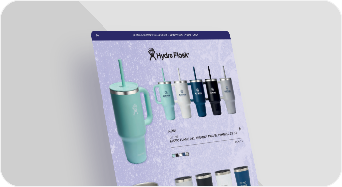 | 34 SPRING & SUMMER COLLECTION DRINKWARE: HYDRO FLASK NEW! £ ® ® HYDRO FLASK ALL AROUND TRAVEL TUMBLER Ÿ¢ OZ MOQ: ‘¤ £” ® ™ HYDRO FLASK ALL AROUND TUMBLER ¢¡ OZ MOQ: ‘¤