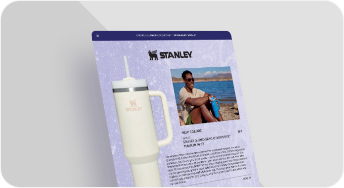 36 SPRING & SUMMER COLLECTION | DRINKWARE: STANLEY NEW COLORS! 1603-01 ™ STANLEY QUENCHER H¢.O FLOWSTATE TUMBLER £¡ OZ Constructed from recycled stainless steel for sustainable sipping, the 40 oz Quencher H2.0 offers maximum hydration with fewer refills. Commuting, studio workouts, day trips or your front porch — you’ll want this tumbler by your side. Thanks to Stanley’s vacuum insulation, your water will stay ice-cold, hour after hour. The advanced FlowState™ lid features a rotating cover with three positions: a straw opening designed to resist splashes while holding the reusable straw in place, a drink opening, and a full-cover top. The ergonomic handle includes comfort-grip inserts for easy carrying, and the narrow base fits just about any car cup holder. MOQ: ª°