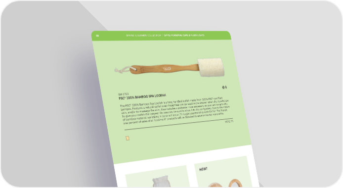 58 SPRING & SUMMER COLLECTION | GIFTS: PERSONAL CARE & FLASHLIGHTS 58 SM — ® FSC ›¡¡% BAMBOO SPA LOOFAH ® ® The FSC % Bamboo Spa Loofah is a long handled loofah made from % FSC -certified bamboo. Features a natural loofah wash head that can be used in the shower when dry to exfoliate skin, and/or to massage the skin. Also includes a polyester rope accessory so you can hang to dry. To give your loofah the longest life possible, be sure to allow it to dry completely. Due to the nature of bamboo material, variations in color will occur. Through a partnership with % For The Planet, ® one percent of sales of all EcoSmart products will be donated to environmental nonprofits. MOQ: ” NEW! SM SM £ ® ŸªPIECE JUTE SPA SET FSC ›¡¡% BAMBOO COMPACT MIRROR´BRUSH MOQ: MOQ: