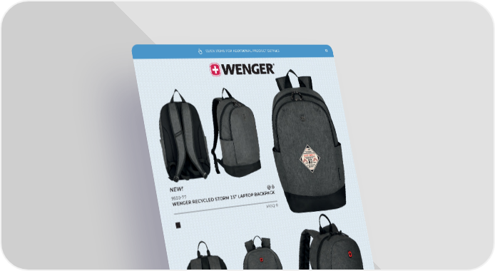 Spring & Summer Promo Must-Haves 2024 Page 12 Page 14CLICK ITEMS FOR ADDITIONAL PRODUCT DETAILS 13 NEW! £”” WENGER RECYCLED STORM ›œ” LAPTOP BACKPACK MOQ: NEW! £”” WENGER RECYCLED RUSH ›œ” LAPTOP BACKPACK MOQ: