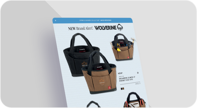 Spring & Summer Promo Must-Haves 2024 Page 7 Page 98 SPRING & SUMMER COLLECTION | BAGS: WOLVERINE NEW Brand Alert! NEW! — £ WOLVERINE ›Ÿ INCH ›¥ POCKET TOOL TOTE MOQ: ‘ NEW! — — WOLVERINE ›Ÿ INCH ›£ POCKET TOOL BAG MOQ: ‘